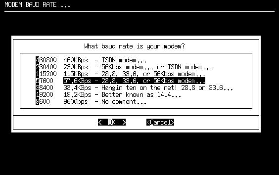 Next, pick the baud rate that's closest to your modem's. If you don't know the baud rate, you could check the modem's box or any documentation that came with it. Each selection has several examples, so it shouldn't be hard to figure out.