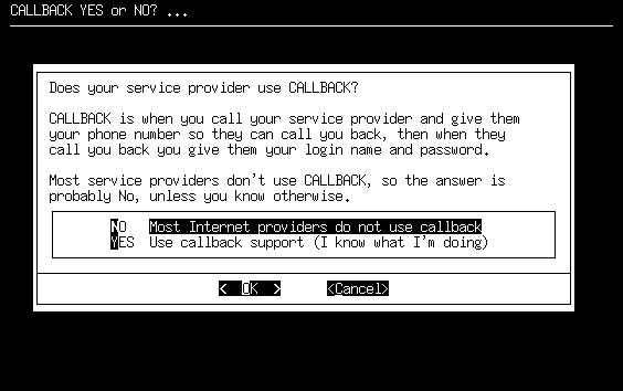 Now, you'll need to start referring to any information that your ISP gave you. Few ISPs use callback, so you can probably safely select “NO”. Callback is where you dial up the ISP and they then call you back so you can log in.