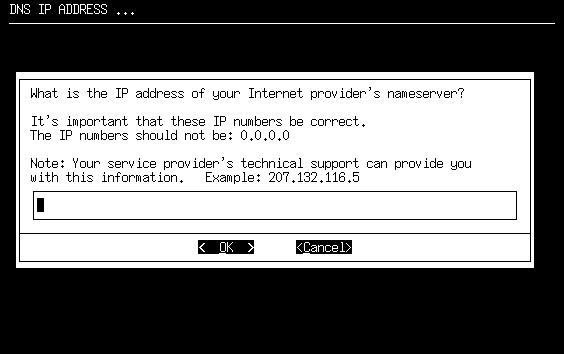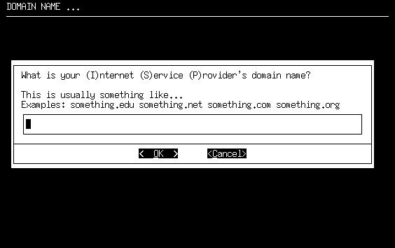 Now, you'll need to enter the domain name of your ISP. This will be something of the form “example.net”, “slackware.com”, or something similar. (Okay, it's most definitely not going to be slackware.com :)